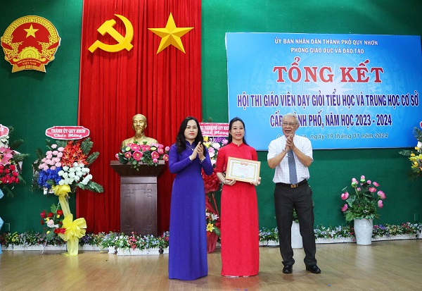 Tổng kết Hội thi, Phòng Giáo dục - Đào tạo TP Quy Nhơn đã công nhận và khen thưởng 105 giáo viên đạt giáo viên dạy giỏi tiểu học cấp thành phố (trong đó, có 32 giải khuyến khích, 52 giải Ba, 20 giải Nhì và 1 giải Nhất được trao cho cô giáo Đinh Thị Thu Trang - Trường tiểu học Ngô Mây); công nhận và khen thưởng 87 giáo viên đạt giáo viên dạy giỏi trung học cơ sở cấp thành phố (trong đó, có 14 giải khuyến khích, 51 giải Ba, 22 giải Nhì).