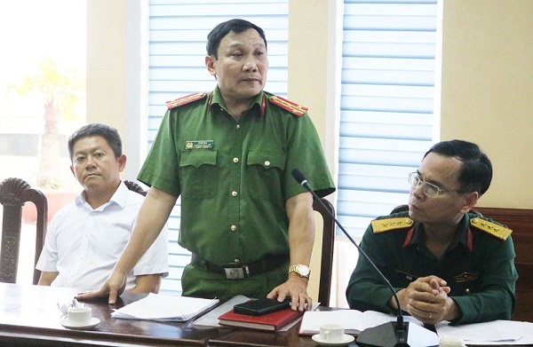 Đ/c Phan Sáu - Trưởng Công an TP Quy Nhơn báo cáo công tác chuẩn bị ANTT, ATGT