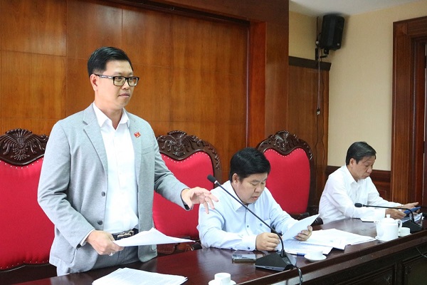 Đ/c Nguyễn Tấn Nghĩa - Chủ tịch HĐQT, Giám đốc Công ty CP Môi trường Bình Định báo cáo các công việc của đơn vị tại cuộc họp